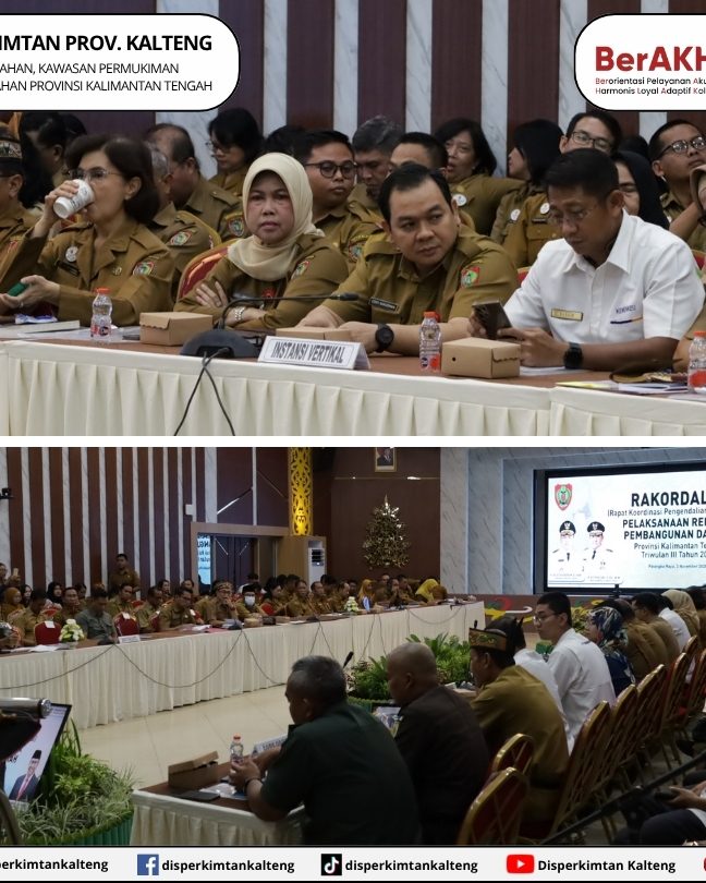 Plt. Kadis Perkimtan Prov. Kalteng Eddy Karusman, ST., MT mengikuti pelaksanaan Rapat Koordinasi Pengendalian dan Evaluasi (Rakordalev) Pelaksanaan Rencana Pembangunan Daerah Provinsi Kalimantan Tengah Triwulan III Tahun 2025 di Aula Bapperida Provinsi Kalimantan Tengah. Senin, (3/11/2025).