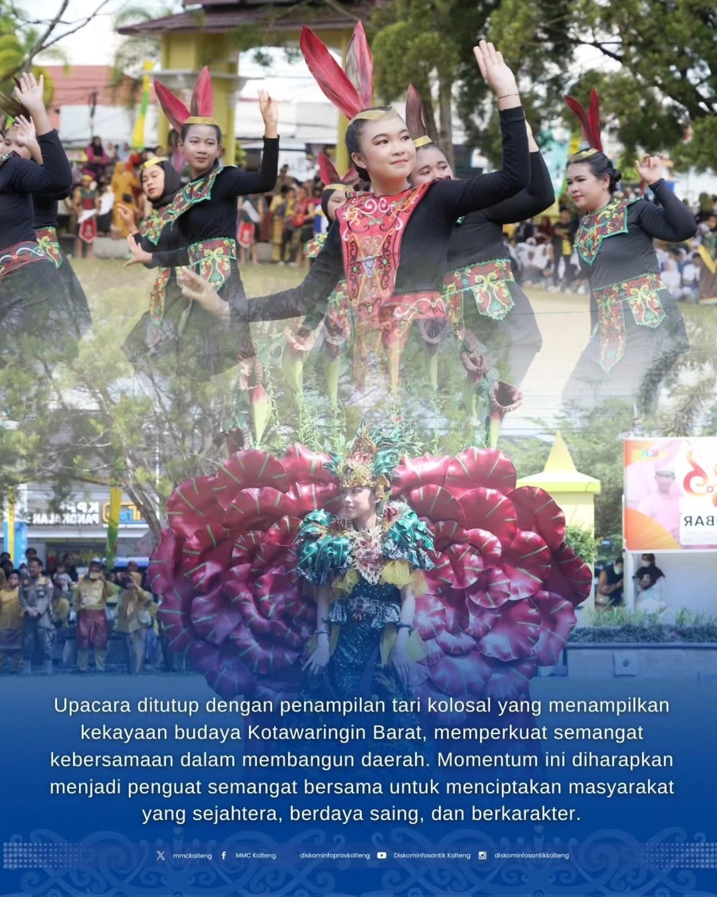 Momentum ini juga dimeriahkan dengan tari kolosal yang menampilkan keindahan budaya Kobar, menjadi simbol persatuan dan semangat bersama menuju daerah yang makin maju dan sejahtera.