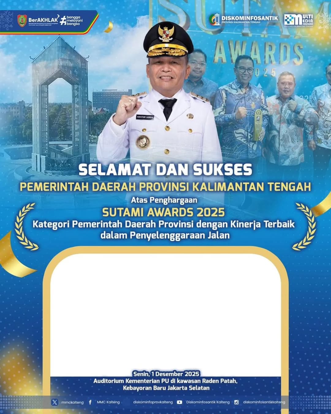 Pemprov Kalimantan Tengah meraih SUTAMI AWARDS 2025 kategori Pemerintah Daerah Provinsi dengan Kinerja Terbaik dalam Penyelenggaraan Jalan!