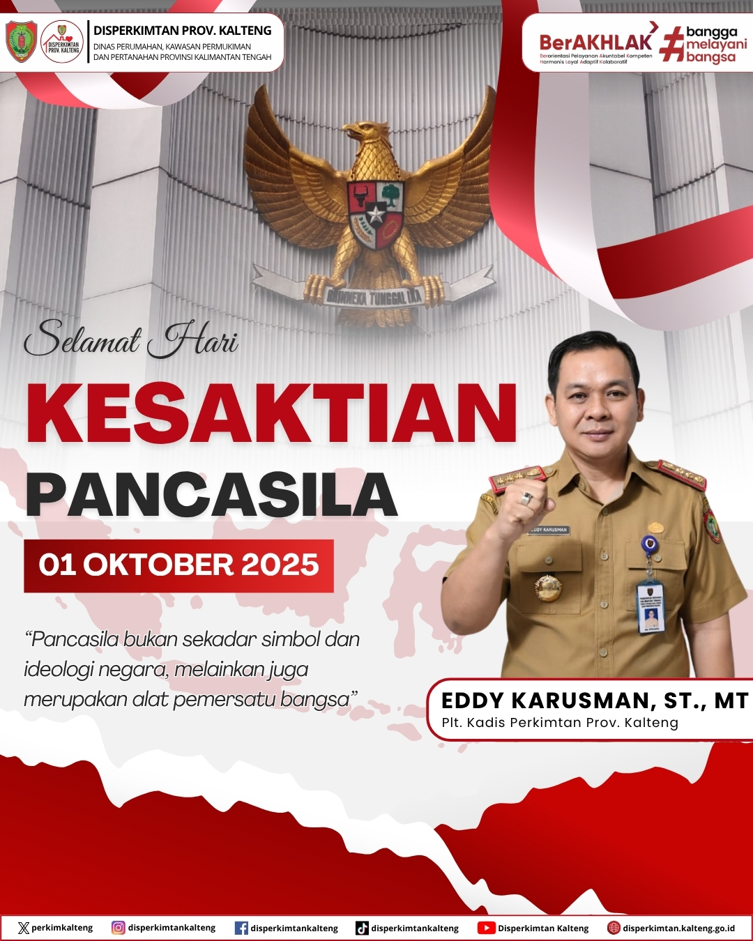 Plt. Kadis Dinas Perkimtan, Eddy Karusman, S.T., M.T dan segenap ASN Dinas Perkimtan mengucapkan Selamat Hari Kesaktian Pancasila, 1 Oktober 2025.