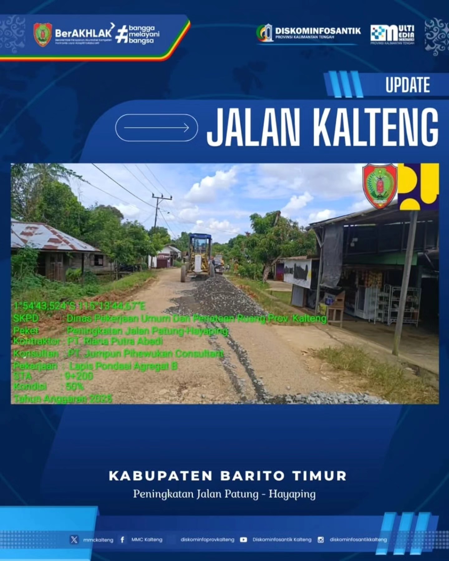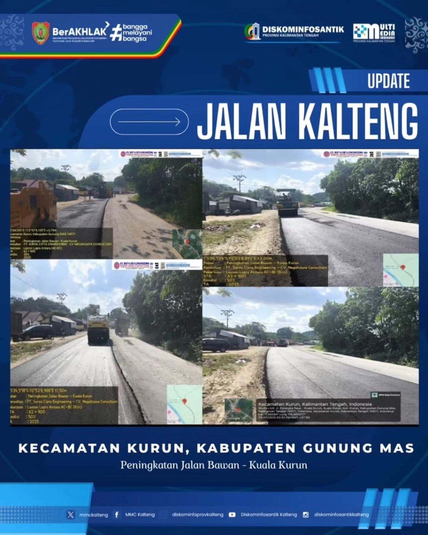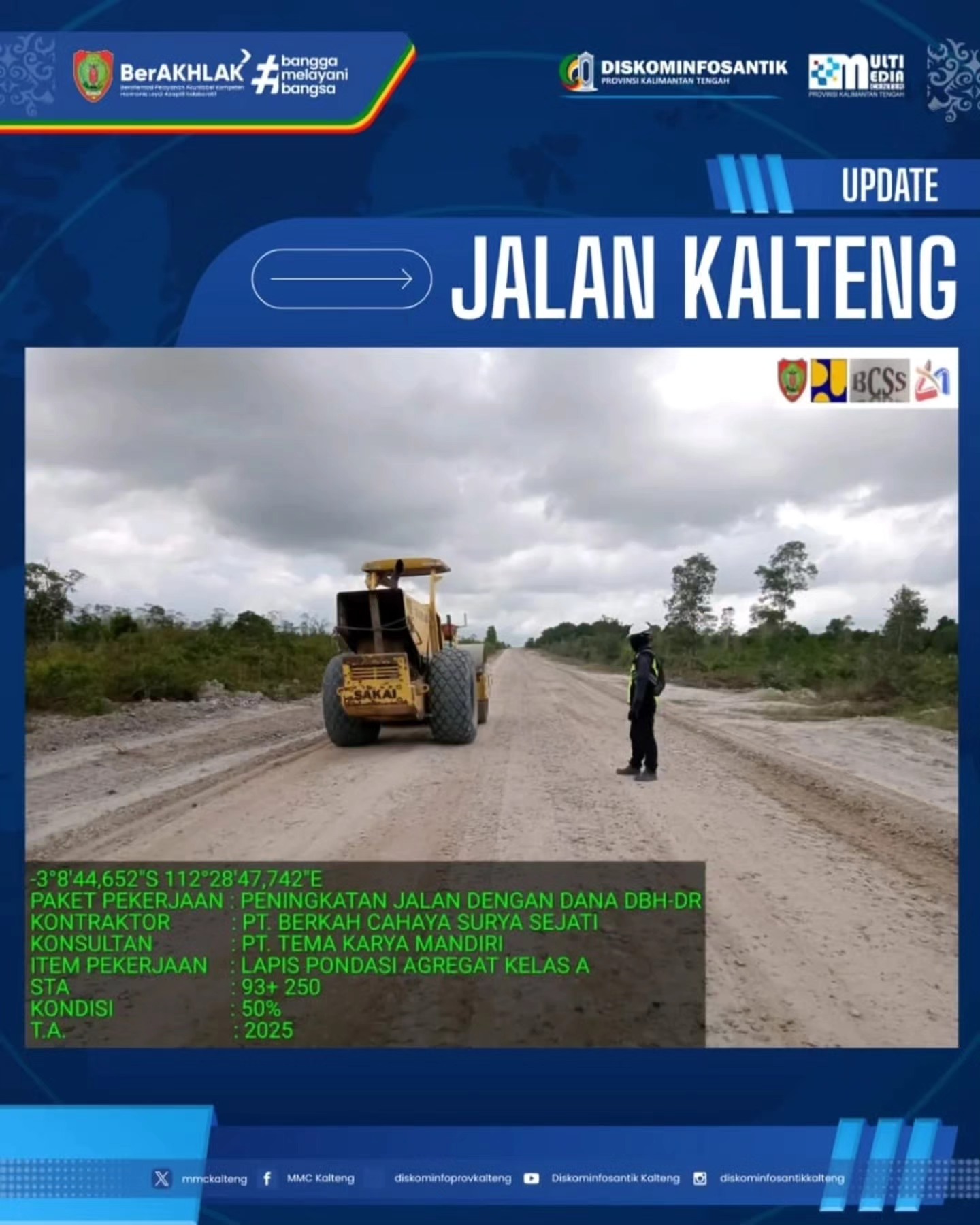 Pemerintah Provinsi Kalimantan Tengah terus berupaya meningkatkan konektivitas antarwilayah melalui berbagai kegiatan perbaikan dan peningkatan infrastruktur jalan demi mendukung kelancaran mobilitas dan pertumbuhan ekonomi masyarakat.