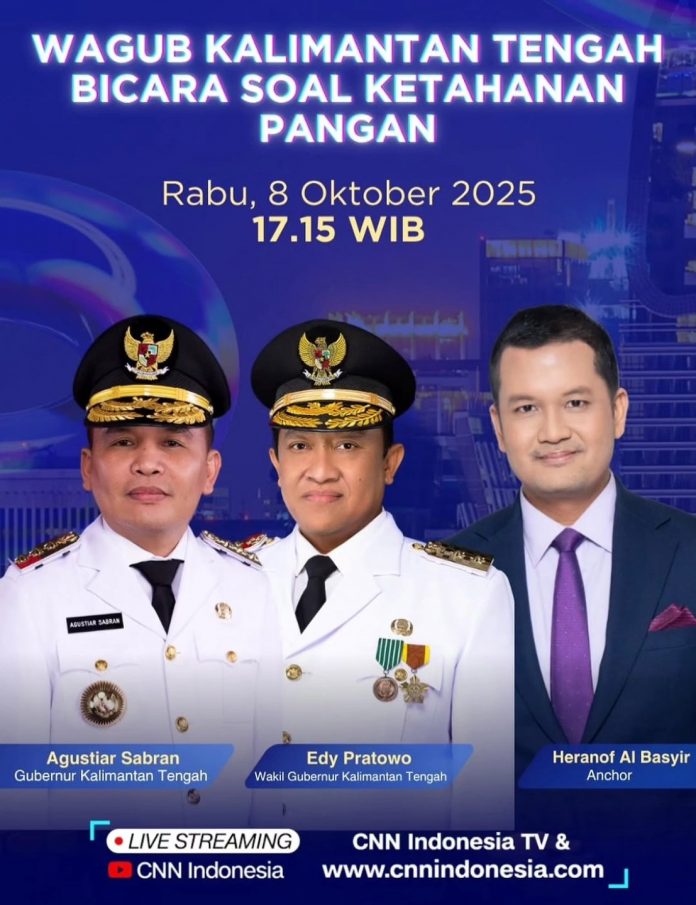 Wakil Gubernur Kalimantan Tengah, H. Edy Pratowo, akan menjadi narasumber dalam CNN Indonesia Leadership Forum bertema “Pilar Nusantara Penopang Asta Cita: Setahun Pemerintahan Prabowo–Gibran dari Perspektif Daerah”.